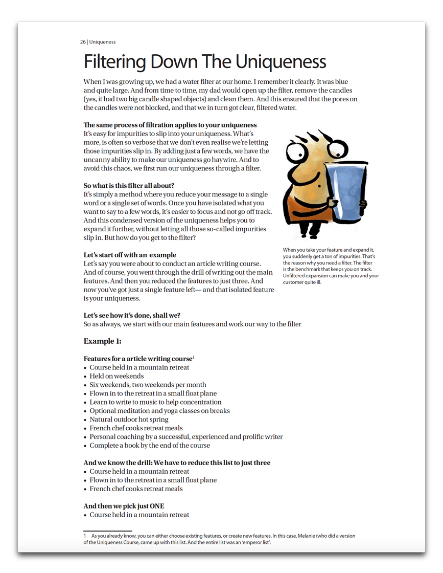 - How to use uniqueness in presentations, sales pitches and sales pages.